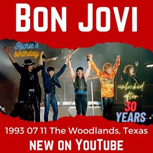 My current fan work is to keep those two playlists up to date, and I will be writing about new uploads. Which is how Bon Jovi, Richie’s Birthday show at the Cynthia Woods Mitchell Pavilion, The Woodlands, Texas, 1993, came about.